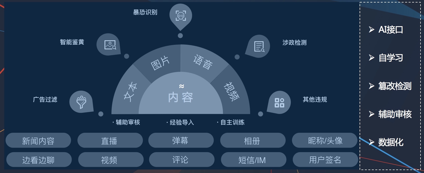 对文字、图片、视频、头像等内容进行鉴黄、鉴